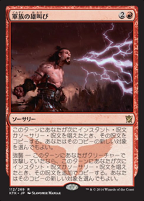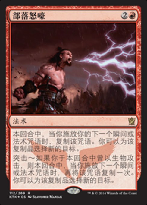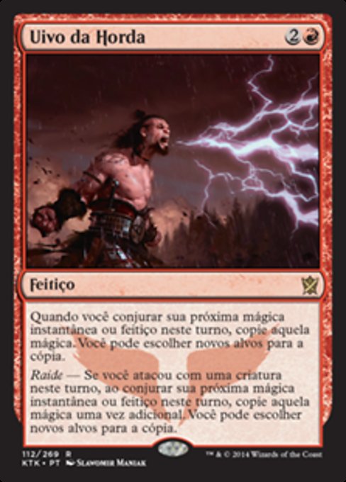 |  Variations— Parts— | Howl of the HordeWhen you next cast an instant or sorcery spell this turn, copy that spell. You may choose new targets for the copy. Raid — If you attacked this turn, when you next cast an instant or sorcery spell this turn, copy that spell an additional time. You may choose new targets for the copy.