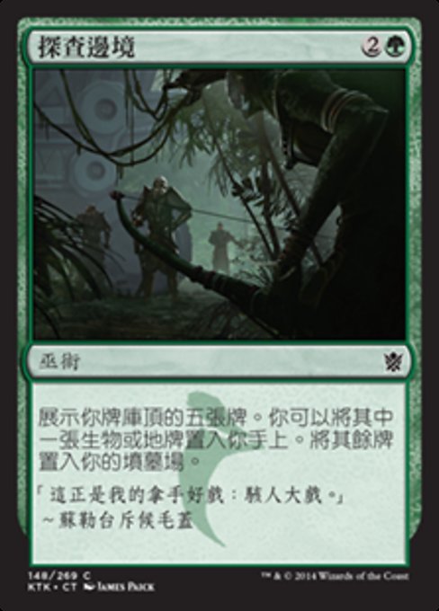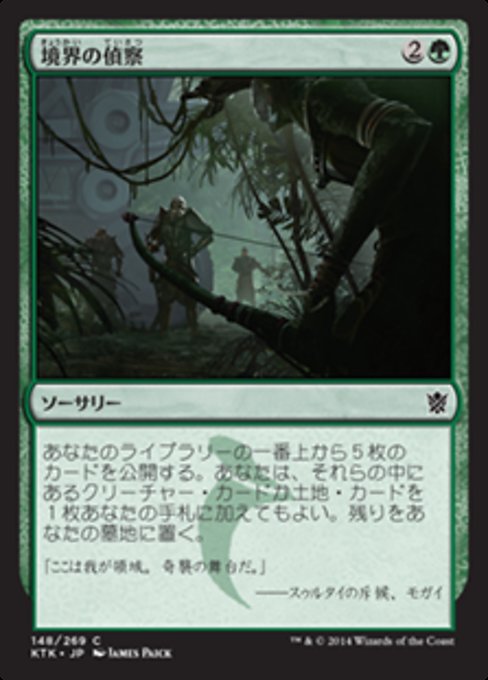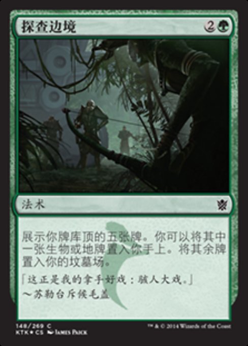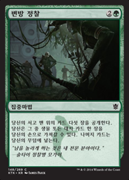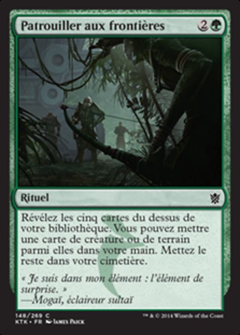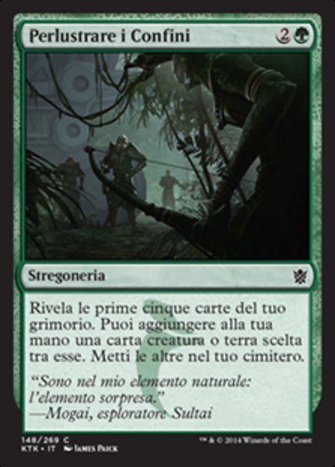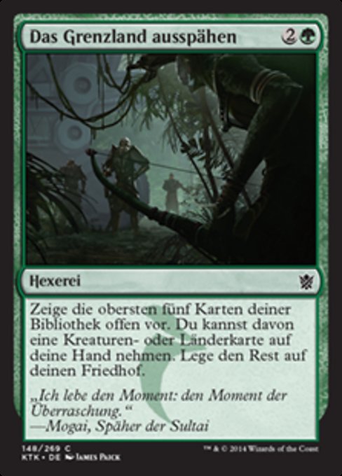 ![]() Variations— Parts— | Scout the BordersReveal the top five cards of your library. You may put a creature or land card from among them into your hand. Put the rest into your graveyard.