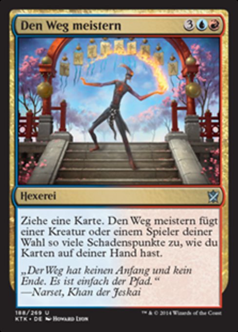 LegalitiesLegal Duel Brawl Penny Legacy Modern Pioneer Vintage Historic Timeless Commander Gladiator Oathbreaker Not Legal Predh Future Pauper Alchemy Standard Oldschool Premodern Standardbrawl Paupercommander RulingsUse the number of cards in your hand after you draw the card to determine how much damage Master the Way deals to the target permanent or player. (Remember that Master the Way is not in your hand; it’s on the stack.)