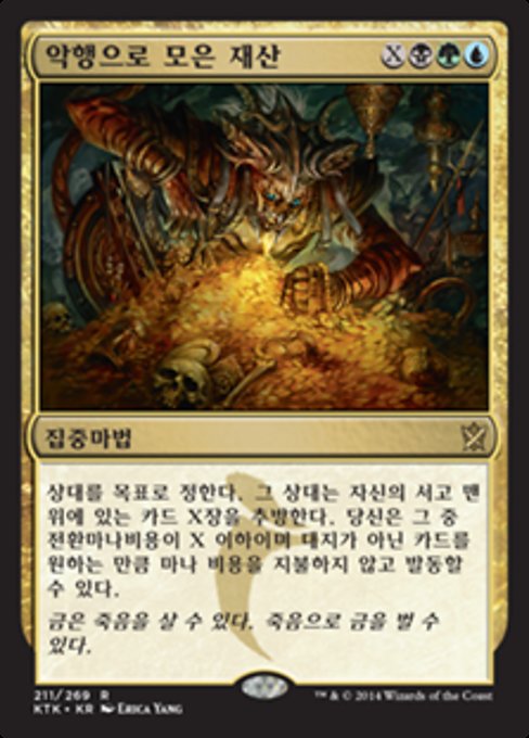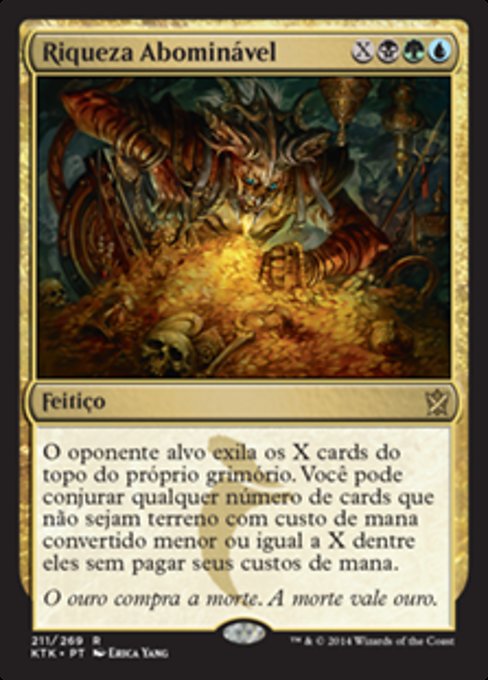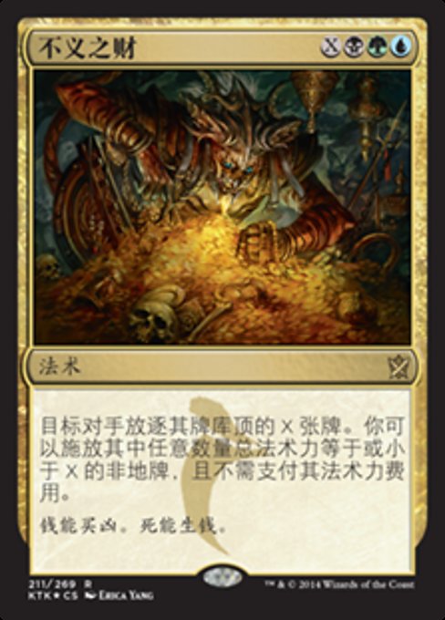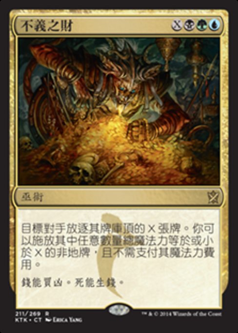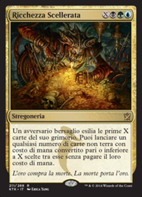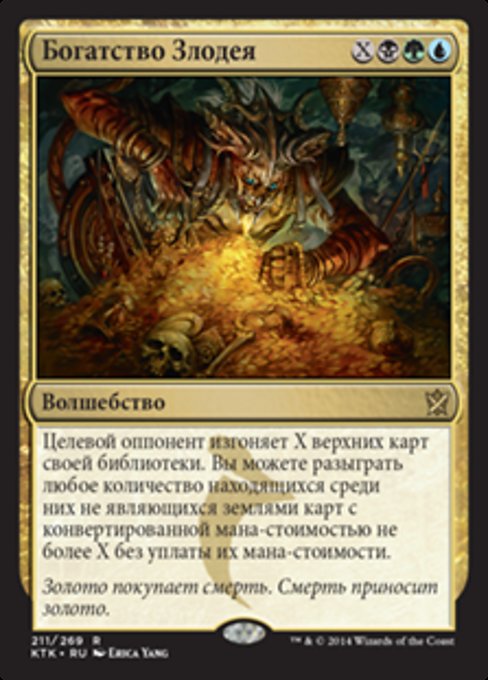 ![]() Variations : 1Parts— | Villainous WealthTarget opponent exiles the top X cards of their library. You may cast any number of spells with mana value X or less from among them without paying their mana costs.