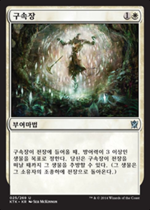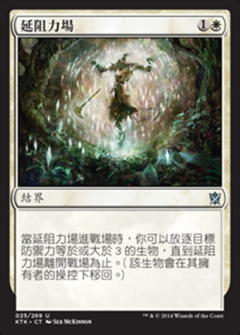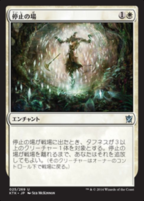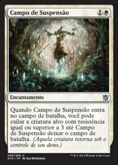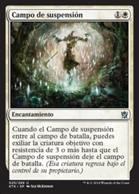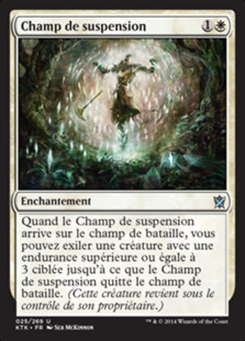 ![]() Variations— Parts— | Suspension FieldWhen this enchantment enters, you may exile target creature with toughness 3 or greater until this enchantment leaves the battlefield. (That creature returns under its owner's control.)