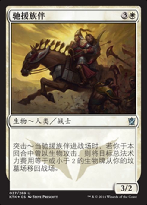 ![]() Variations— Parts— | Timely Hordemate3 / 2 Raid — When this creature enters, if you attacked this turn, return target creature card with mana value 2 or less from your graveyard to the battlefield.
