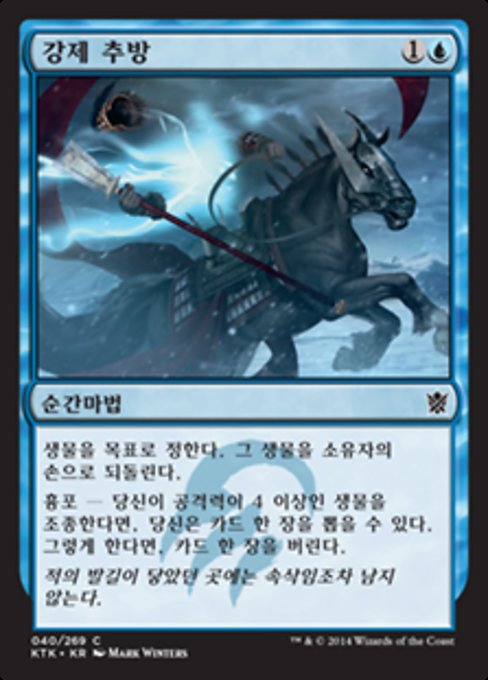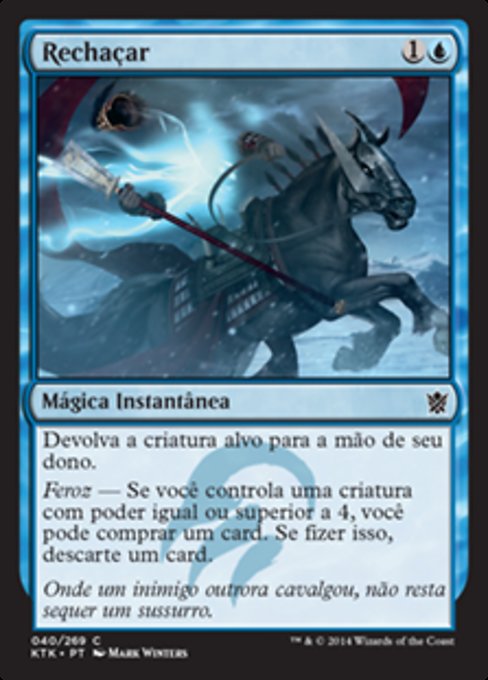![]() Variations— Parts— | Force AwayReturn target creature to its owner's hand. Ferocious — If you control a creature with power 4 or greater, you may draw a card. If you do, discard a card.