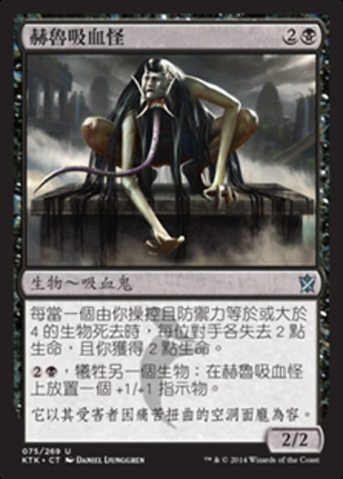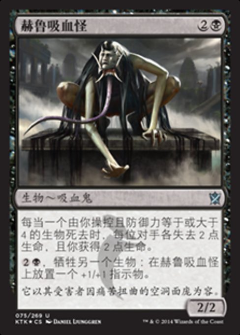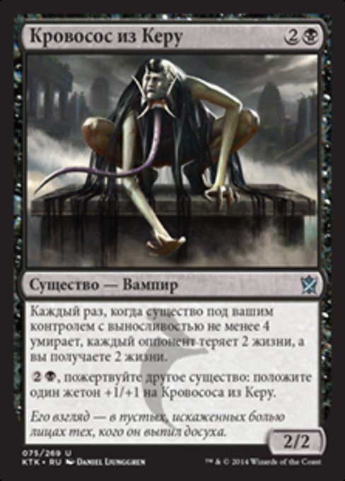 ![]() Variations— Parts— | Kheru Bloodsucker2 / 2 Whenever a creature you control with toughness 4 or greater dies, each opponent loses 2 life and you gain 2 life.