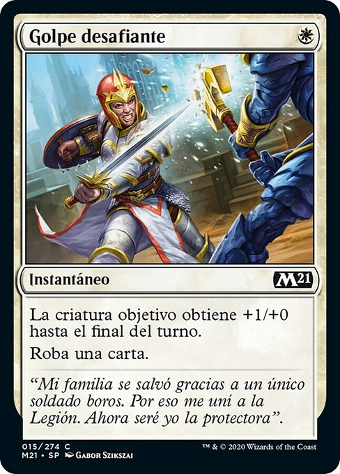 |  Variations— Parts— | Golpe desafianteLa criatura objetivo obtiene +1/+0 hasta el final del turno. Roba una carta.