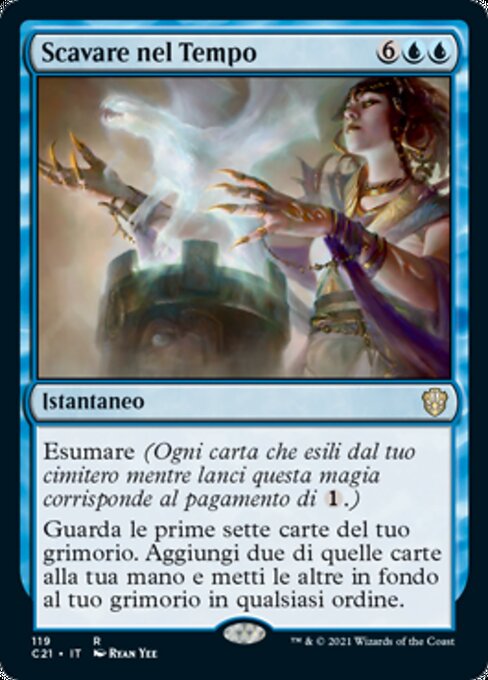 ![]() Variations— Parts— | Scavare nel TempoEsumare (Ogni carta che esili dal tuo cimitero mentre lanci questa magia corrisponde al pagamento di Guarda le prime sette carte del tuo grimorio. Aggiungi due di quelle carte alla tua mano e metti le altre in fondo al tuo grimorio in qualsiasi ordine.