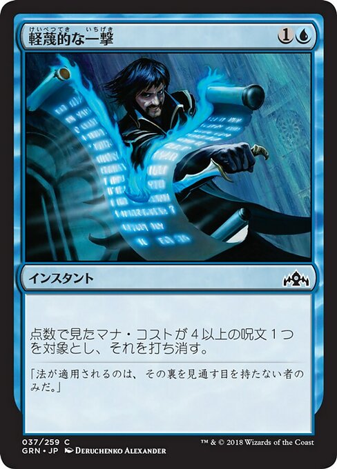 ![]() Variations— Parts— | 軽蔑的な一撃点数で見たマナ・コストが4以上の呪文1つを対象とし、それを打ち消す。