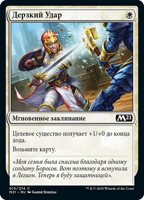 ![]() Variations— Parts— | Дерзкий УдарЦелевое существо получает +1/+0 до конца хода. Возьмите карту.