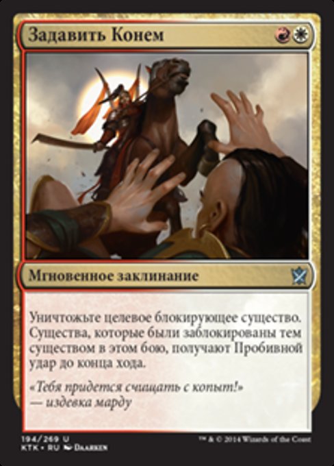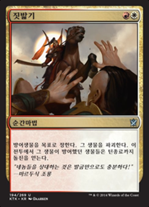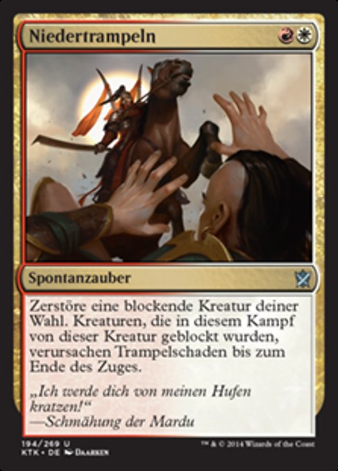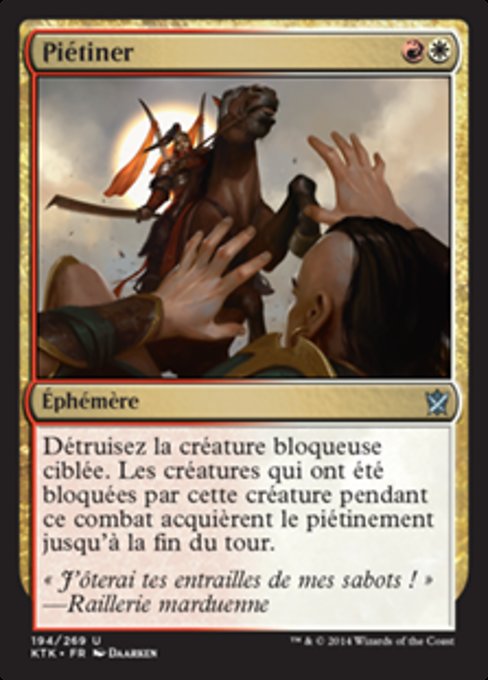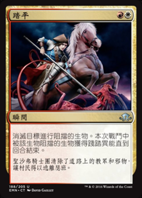 ![]() Variations— Parts— | 踏平消滅目標進行阻擋的生物。本次戰鬥中被該生物阻擋的生物獲得踐踏異能直到回合結束。