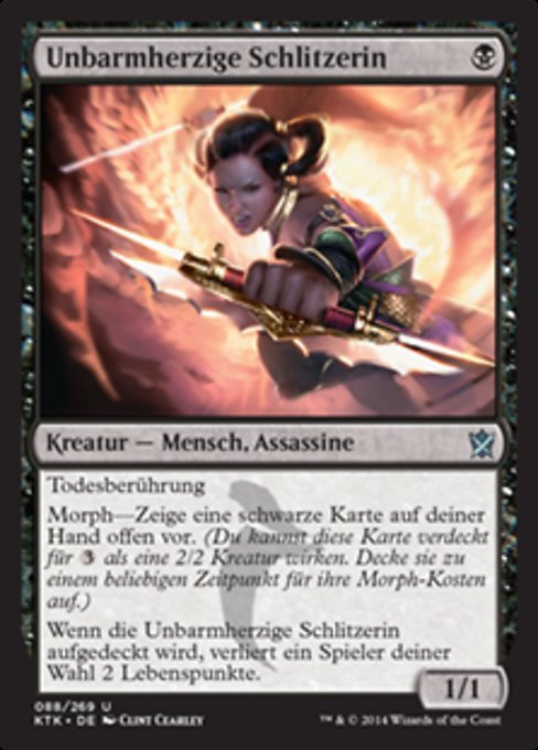 ![]() Variations— Parts— | 無情奪魂客1 / 1 死觸 變身~從你手上展示一張黑色牌。(你可牌面朝下地施放此牌並支付 當無情奪魂客翻回正面時,目標玩家失去2點生命。