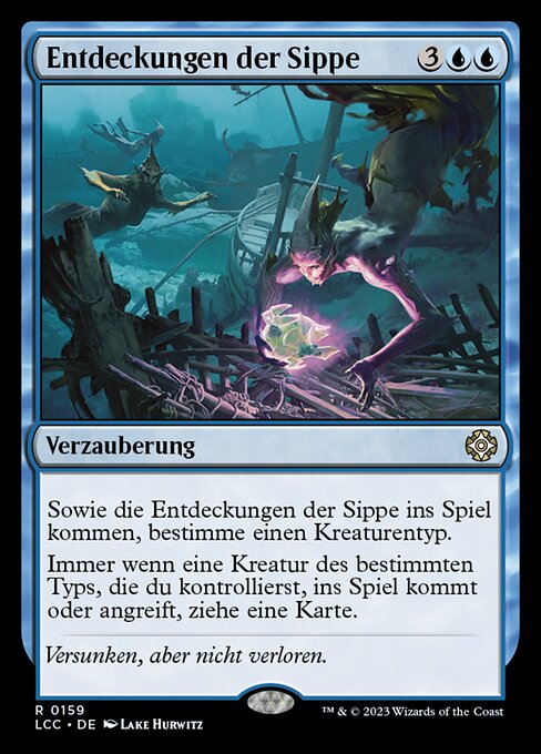![]() Variations— Parts— | Kindred DiscoveryAs this enchantment enters, choose a creature type. Whenever a creature you control of the chosen type enters or attacks, draw a card.