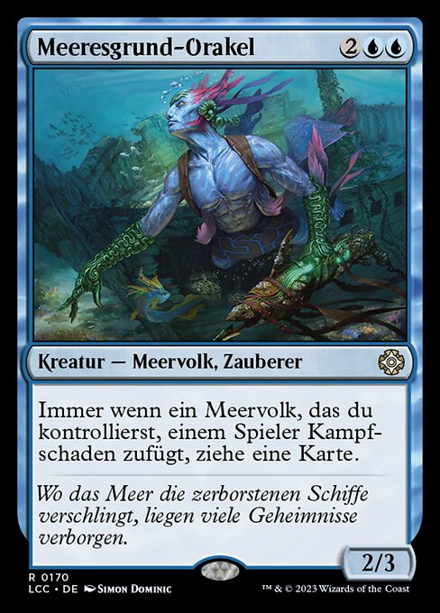 LegalitiesLegal Duel Brawl Penny Legacy Modern Pioneer Vintage Historic Timeless Commander Gladiator Oathbreaker Not Legal Predh Future Pauper Alchemy Standard Oldschool Premodern Standardbrawl Paupercommander RulingsIf Seafloor Oracle is dealt lethal damage at the same time a Merfolk you control deals combat damage to a player, you'll draw a card.
