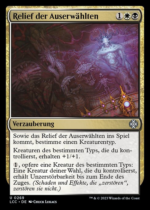 |  Variations— Parts— | Incisioni dei PresceltiMentre le Incisioni dei Prescelti entrano nel campo di battaglia, scegli un tipo di creatura. Le creature che controlli del tipo scelto prendono +1/+1.