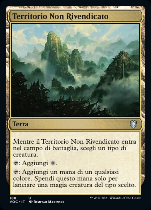 ![]() Variations— Parts— | Territorio Non RivendicatoMentre il Territorio Non Rivendicato entra nel campo di battaglia, scegli un tipo di creatura.