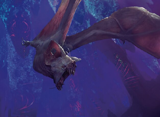 当深窟蝙蝠进战场时,检视目标对手的手牌。你可以放逐其中一张非地牌,直到深窟蝙蝠离开战场为止。
