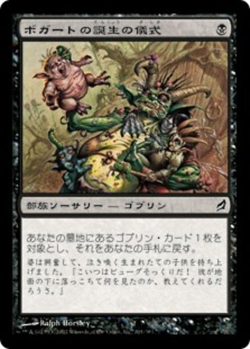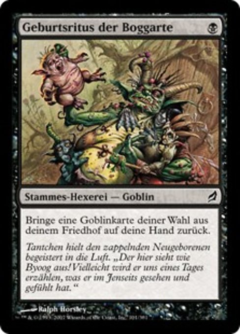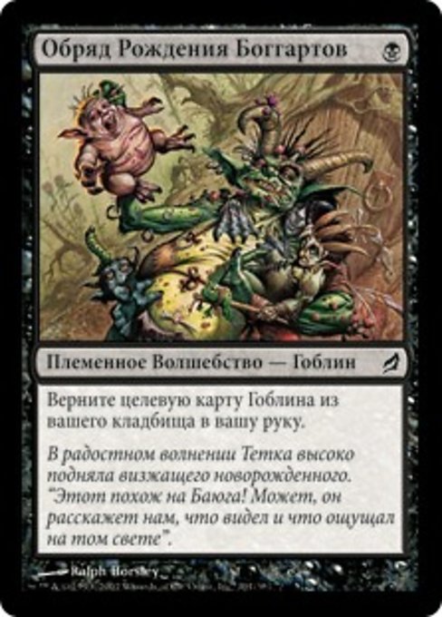 ![]() Variations— Parts— | Boggart Birth RiteReturn target Goblin card from your graveyard to your hand.