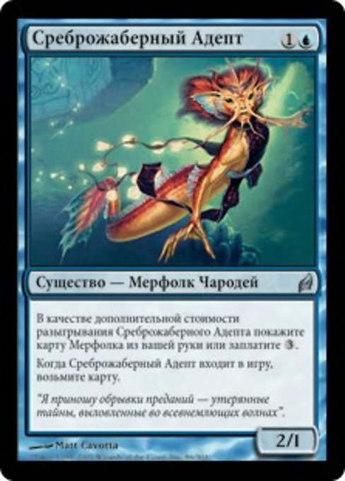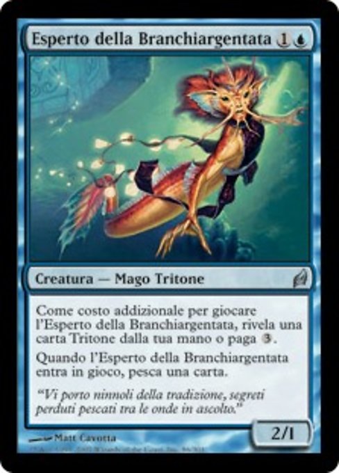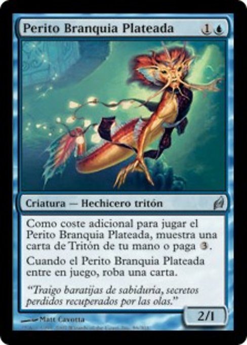 |  Variations— Parts— | Perito Branquia Plateada2 / 1 Como coste adicional para jugar el Perito Branquia Plateada, muestra una carta de Tritón de tu mano o paga  Cuando el Perito Branquia Plateada entre en juego, roba una carta.