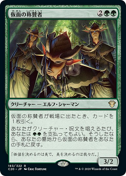 |  Variations— Parts— | 仮面の称賛者3 / 2 仮面の称賛者が場に出たとき、カードを1枚引く。 あなたがクリーチャー呪文をプレイするたび、あなたは