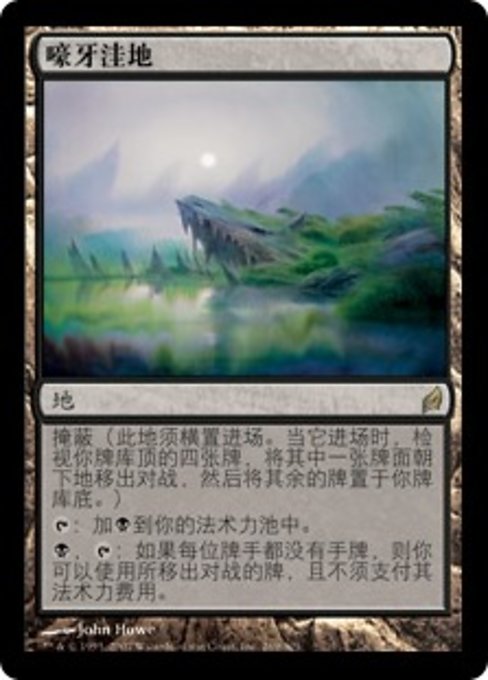 |  Variations— Parts— | 吠え歯のうろ穴秘匿 (この土地はタップ状態で場に出る。 そうしたとき、あなたのライブラリーの一番上から4枚のカードを見て、そのうち1枚を裏向きでゲームから取り除き、その後残りをあなたのライブラリーの一番下に置く。)