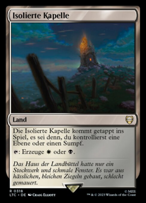 |  Variations— Parts— | Isolated ChapelThis land enters tapped unless you control a Plains or a Swamp.