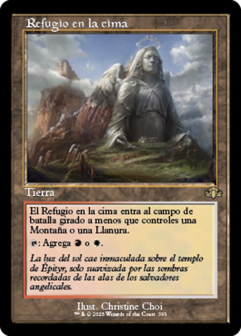 ![]() Variations— Parts— | Refugio en la cimaEl Refugio en la cima entra al campo de batalla girado a menos que controles una Montaña o una Llanura.
