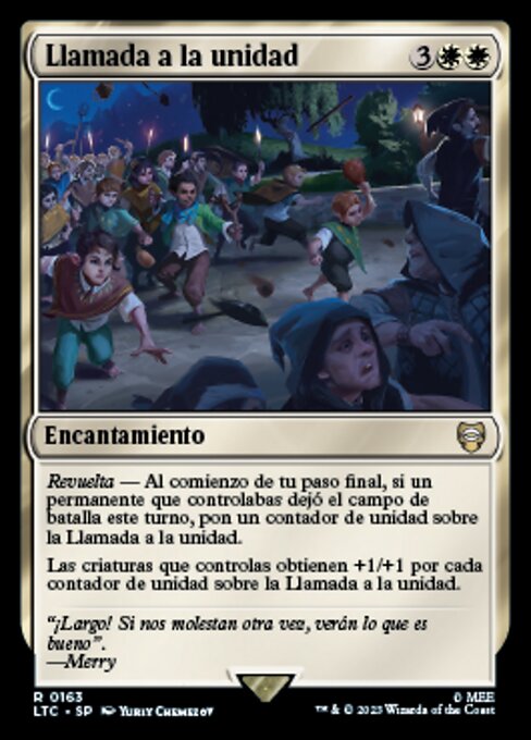 |  Variations— Parts— | Richiamo all'UnitàRivolta — All'inizio della tua sottofase finale, se un permanente che controllavi ha lasciato il campo di battaglia in questo turno, metti un segnalino unità sul Richiamo all'Unità. Le creature che controlli prendono +1/+1 per ogni segnalino unità sul Richiamo all'Unità.