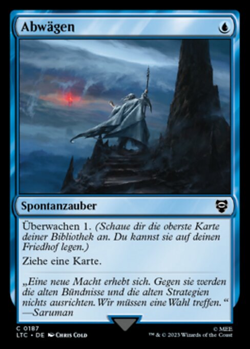 ![]() Variations— Parts— | 考慮諜報1を行う。(あなたのライブラリーの一番上にあるカード1枚を見る。そのカードをあなたの墓地に置いてもよい。) カード1枚を引く。