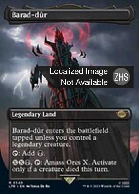 ![]() Variations : 3Parts : 2 | Barad-dûrBarad-dûr enters tapped unless you control a legendary creature.