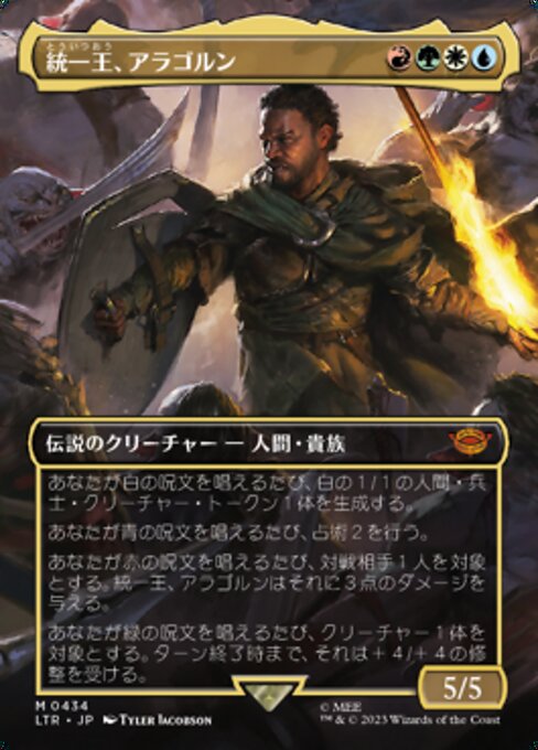 LegalitiesLegal Duel Brawl Penny Legacy Modern Vintage Historic Timeless Commander Gladiator Oathbreaker Not Legal Predh Future Pauper Alchemy Pioneer Standard Oldschool Premodern Standardbrawl Paupercommander RulingsIf you cast a spell that's multiple colors, more than one of Aragorn, the Uniter's abilities may trigger. In that case, you choose the order in which the abilities are put onto the stack.
