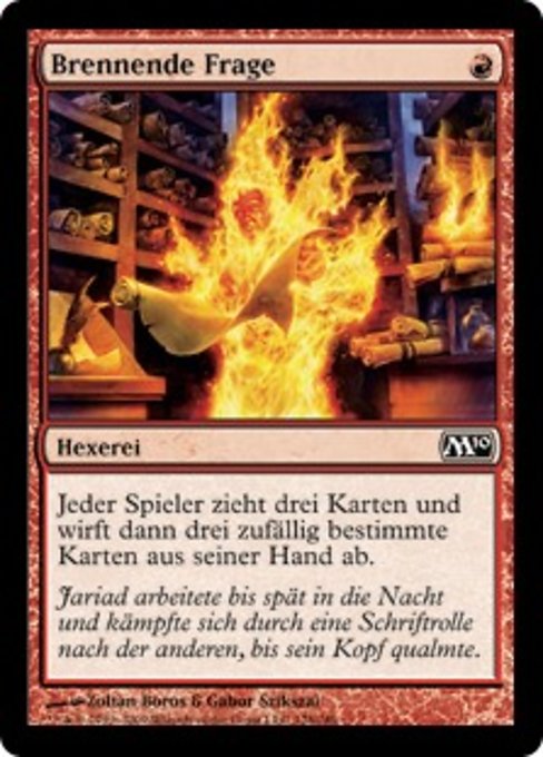 |  Variations— Parts— | Burning InquiryEach player draws three cards, then discards three cards at random.