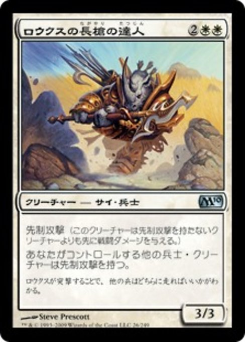 ![]() Variations— Parts— | Rhox Pikemaster3 / 3 First strike (This creature deals combat damage before creatures without first strike.) Other Soldier creatures you control have first strike.