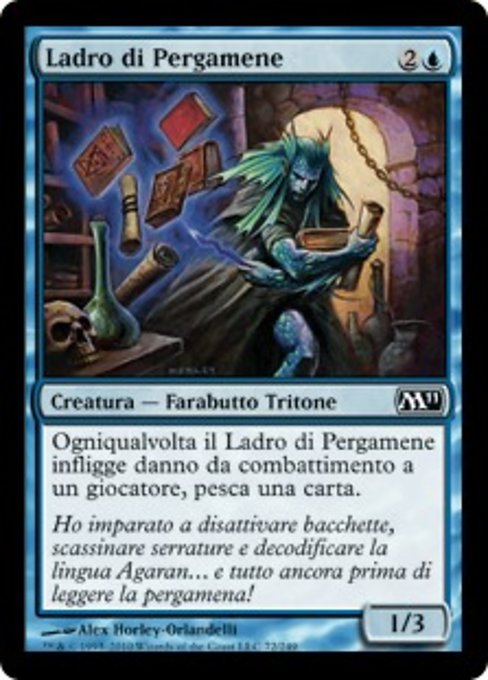 ![]() Variations— Parts— | Scroll Thief1 / 3 Whenever this creature deals combat damage to a player, draw a card.