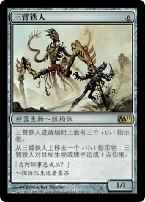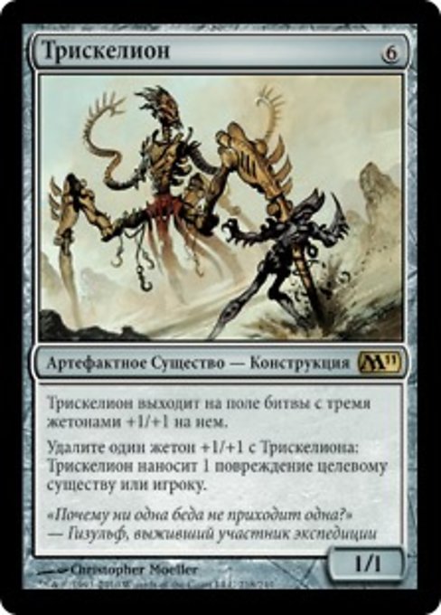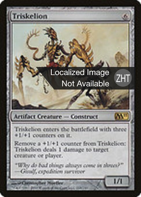 |  Variations— Parts— | Triskèle1 / 1 Le Triskèle arrive sur le champ de bataille avec trois marqueurs +1/+1 sur lui. Retirez un marqueur +1/+1 du Triskèle : Le Triskèle inflige une blessure à une cible, créature ou joueur.