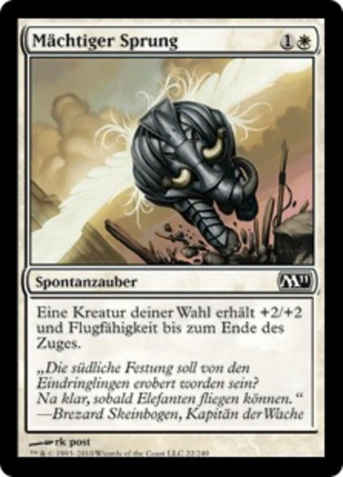 |  Variations— Parts— | Sacré sautLa créature ciblée gagne +2/+2 et acquiert le vol jusqu'à la fin du tour.
