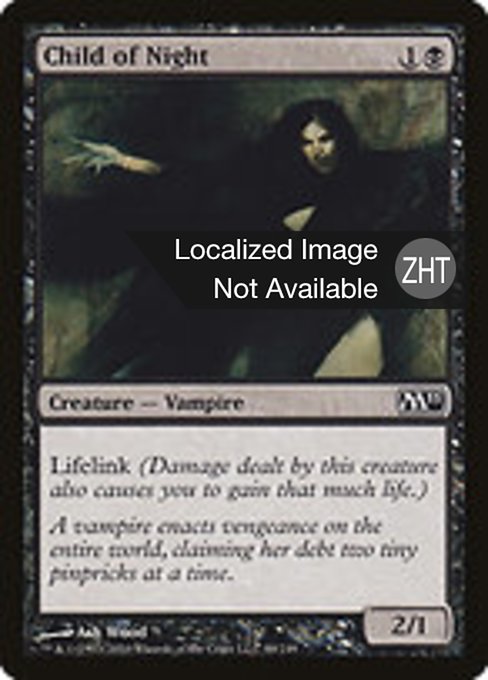![]() Variations— Parts— | Enfant de la nuit2 / 1 Lien de vie (Les blessures infligées par cette créature vous font aussi gagner autant de points de vie.)