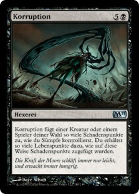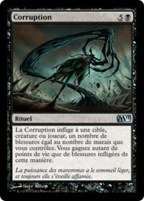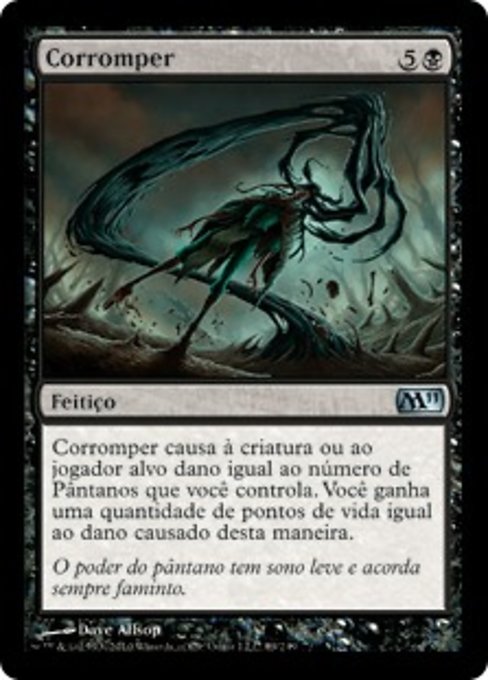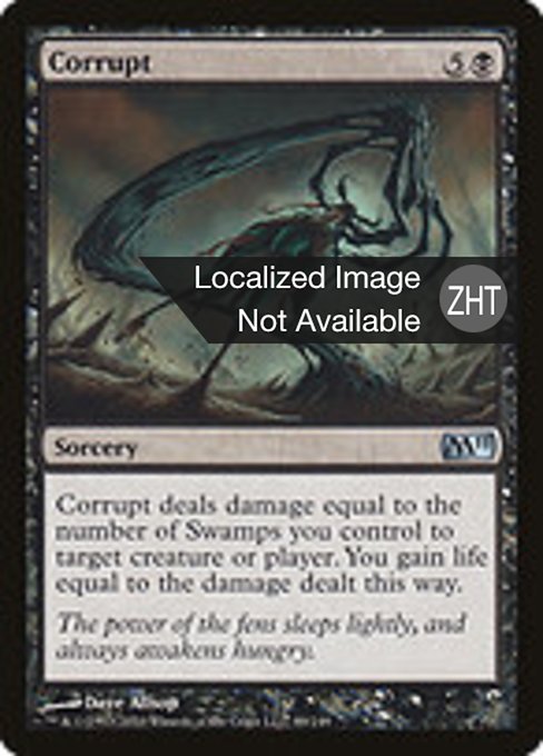 ![]() Variations— Parts— | CorrompereCorrompere infligge danno pari al numero di Paludi che controlli a una creatura o a un giocatore bersaglio. Guadagni punti vita pari ai danni inflitti in questo modo.