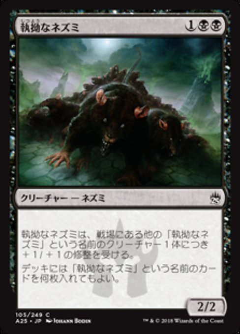 |  Variations— Parts— | 執拗なネズミ2 / 2 執拗なネズミは、戦場にある他の「執拗なネズミ」という名前のクリーチャー1体につき+1/+1の修整を受ける。 デッキには「執拗なネズミ」という名前のカードを何枚でも入れることができる。