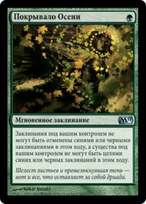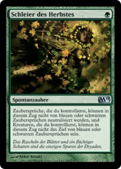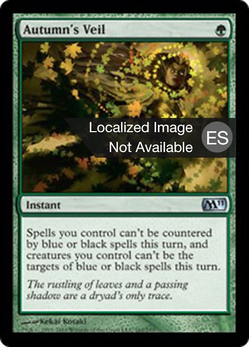 |  Variations— Parts— | Véu do OutonoAs mágicas que você controla não podem ser anuladas por mágicas azuis ou pretas neste turno, e as criaturas que você controla não podem ser alvo de mágicas azuis ou pretas neste turno.