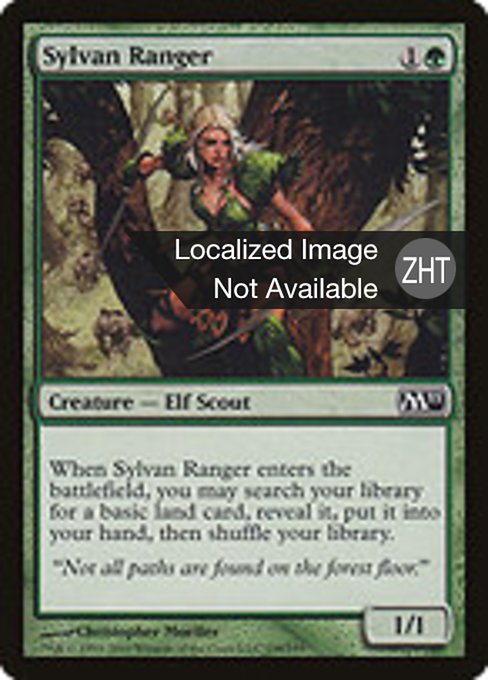 |  Variations— Parts— | Patrulheiro Silvestre1 / 1 Quando Patrulheiro Silvestre entra no campo de batalha, você pode procurar um card de terreno básico em seu grimório, revelá-lo, colocá-lo na sua mão e depois embaralhar seu grimório.