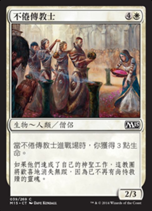 |  Variations— Parts— | 不倦傳教士2 / 3 當不倦傳教士進戰場時,你獲得3點生命。