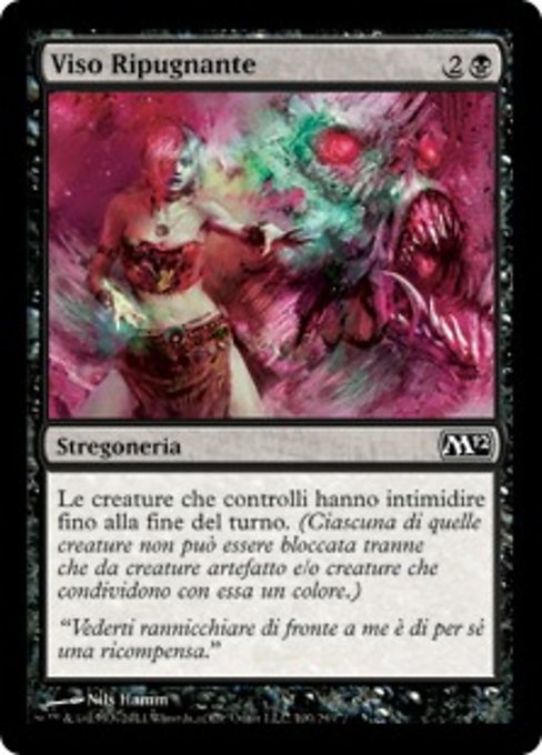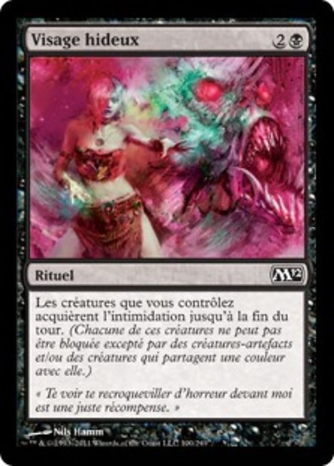 |  Variations— Parts— | Hideous VisageCreatures you control gain intimidate until end of turn. (Each of those creatures can't be blocked except by artifact creatures and/or creatures that share a color with it.)