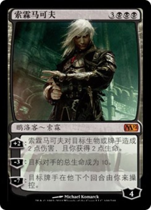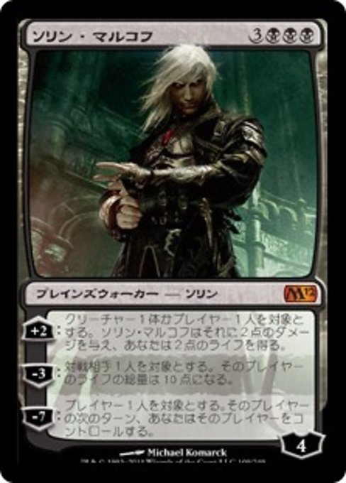 ![]() Variations— Parts— | Sorin Markov+2 : Sorin Markov deals 2 damage to any target and you gain 2 life. −3 : Target opponent's life total becomes 10. −7 : You control target player during that player's next turn.