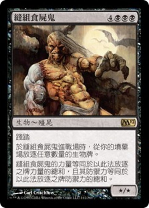 ![]() Variations— Parts— | Sutured Ghoul* / * Trample As this creature enters, exile any number of creature cards from your graveyard. Sutured Ghoul's power is equal to the total power of the exiled cards and its toughness is equal to their total toughness.