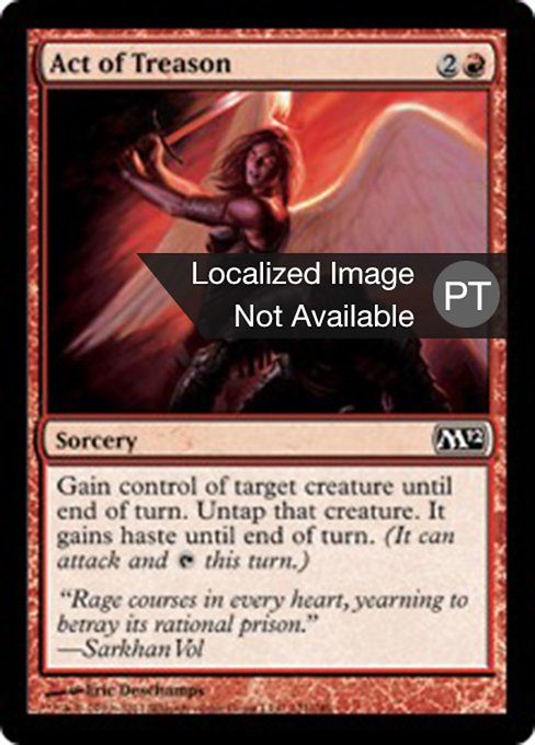 |  Variations— Parts— | Act of TreasonGain control of target creature until end of turn. Untap that creature. It gains haste until end of turn. (It can attack and