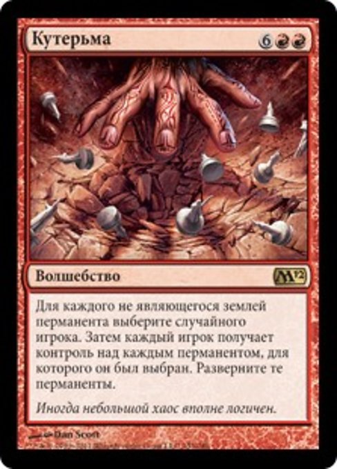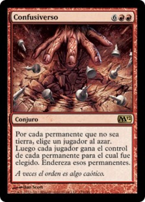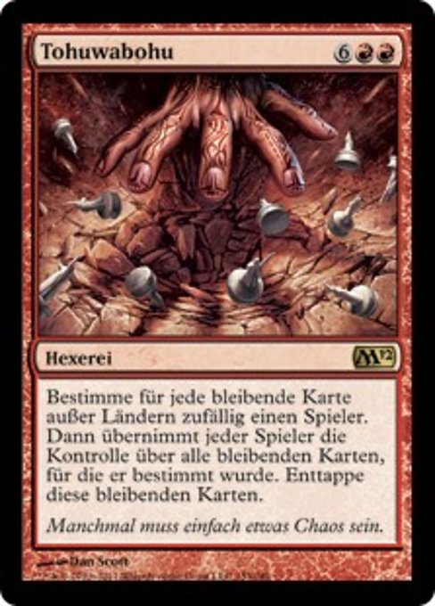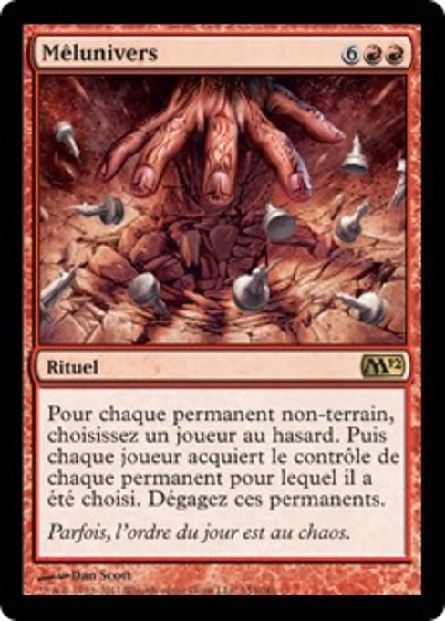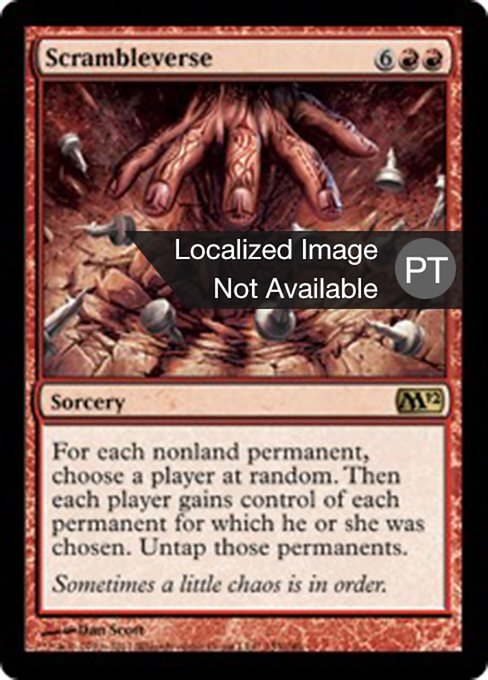 ![]() Variations— Parts— | ScrambleverseFor each nonland permanent, choose a player at random. Then each player gains control of each permanent for which they were chosen. Untap those permanents.