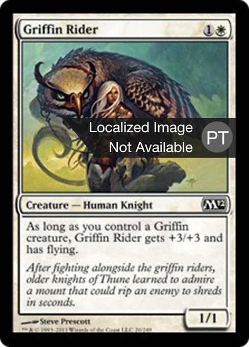 ![]() Variations— Parts— | Griffin Rider1 / 1 As long as you control a Griffin creature, this creature gets +3/+3 and has flying.