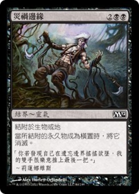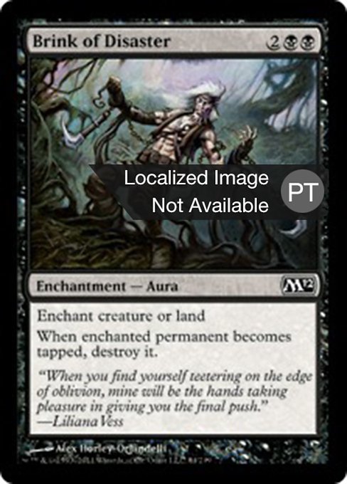 |  Variations— Parts— | Brink of DisasterEnchant creature or land When enchanted permanent becomes tapped, destroy it.