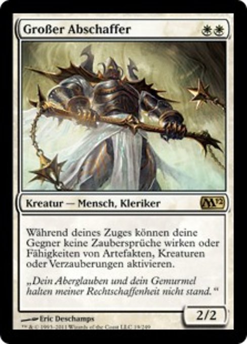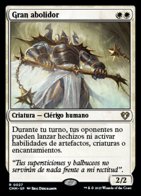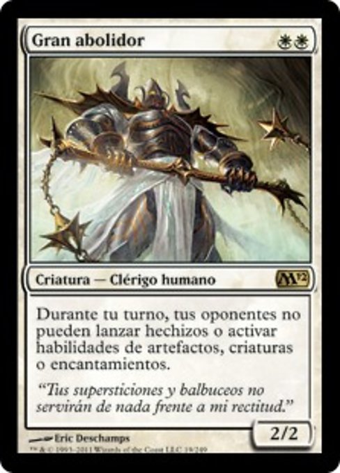 |  Variations— Parts— | Gran abolidor2 / 2 Durante tu turno, tus oponentes no pueden lanzar hechizos o activar habilidades de artefactos, criaturas o encantamientos.