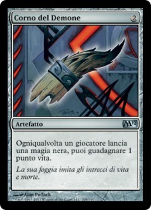 ![]() Variations— Parts— | Cuerno de demonioSiempre que un jugador lance un hechizo negro, puedes ganar 1 vida.