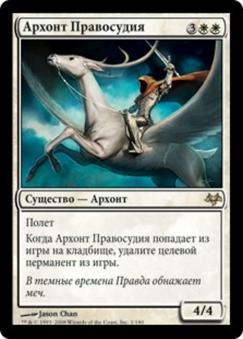 ![]() Variations— Parts— | Архонт Правосудия4 / 4 Полет Когда Архонт Правосудия умирает, изгоните целевой перманент.